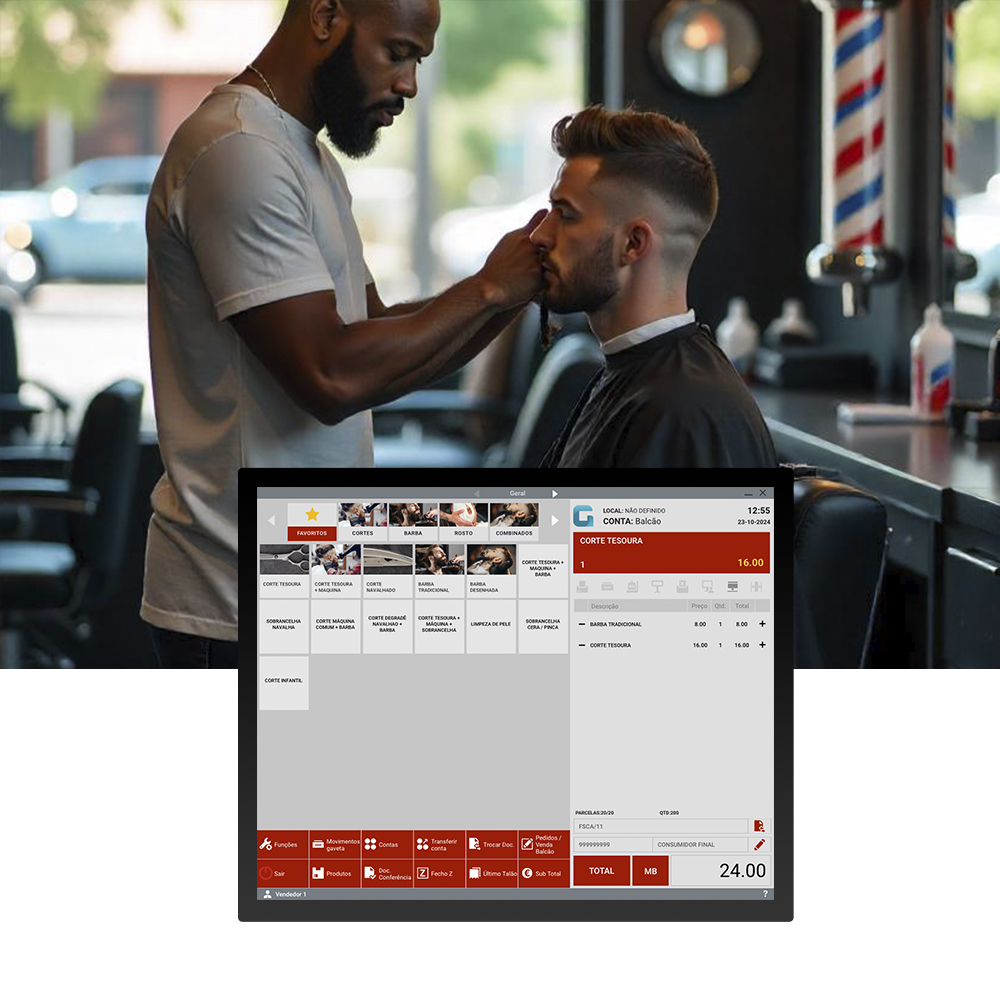 Funções de venda por diferentes funcionários e o cálculo e gestão de comissões, garantindo que tem disponíveis as diversas operações do negócio num único ponto