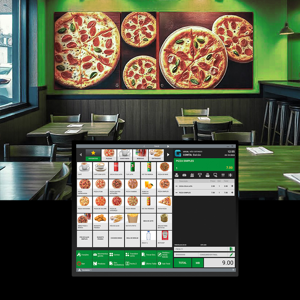 Rapidez e eficácia no atendimento, com gestão de mesas e pedidos, zonas de serviço e preços por terminal ou cliente.