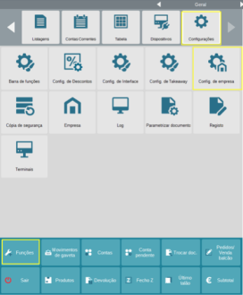 - Vá ao menu Funções – Configurações – Config. de empresa