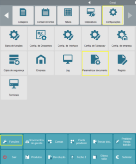 - Vá ao menu Funções – Configurações – Parametrizar Documento